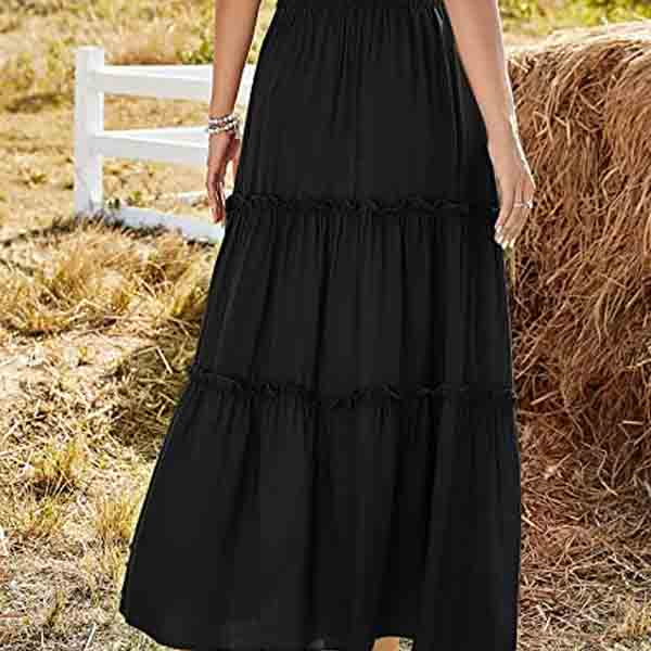 Features: High waisted skirts for women, layered frill trim swing skirts, ruffle pleated maxi skirts, long flowy skirts above ankle length, elastic waist with drawstring decoration, casual loose fit